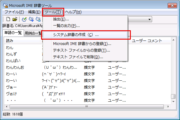 メモ帳から登録しシステム辞書を作成する方法
